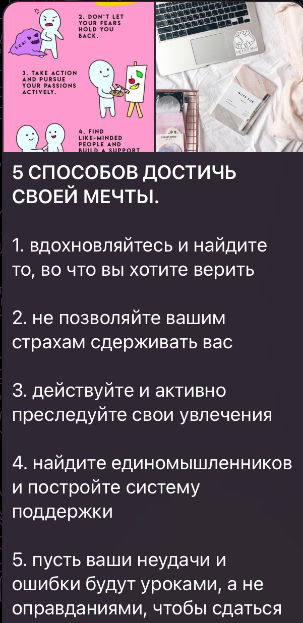 Этот телеграм-канал — ваш личный ежедневник. Здесь вы найдёте советы по планированию времени, чеклисты, идеи для оформления рабочего пространства, фото конспектов. А также много вдохновения и мотивации учиться.