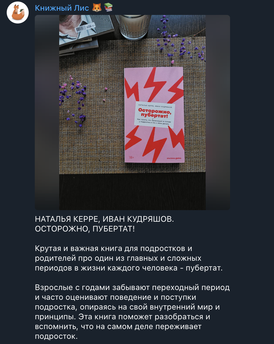 Телеграм-канала с обзорами нон-фикшн и художественной литературы, подборками книг и комиксов. Есть рецензии как на классику, так и на новинки литературы, а также фотообзоры изданий.