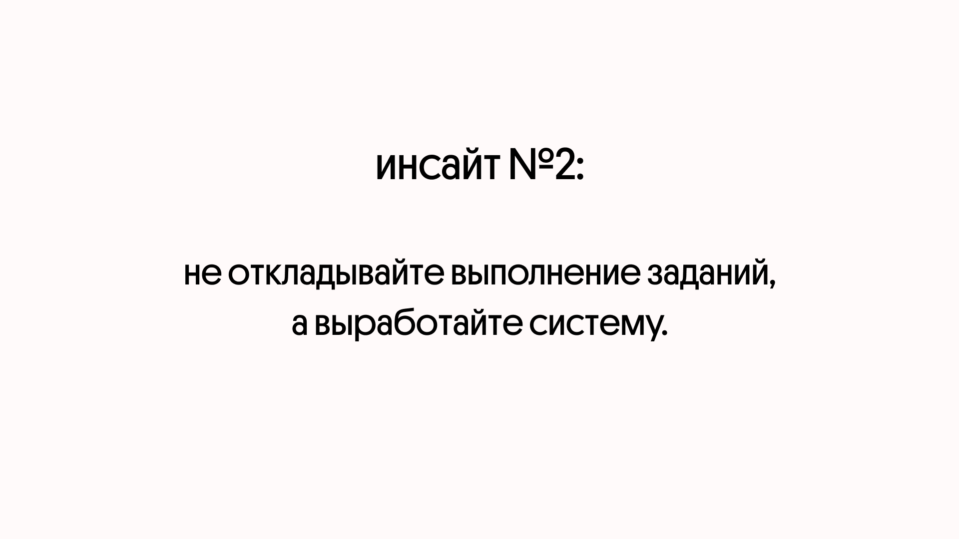 Ещё один пункт, который отметила Агния, связан с выполнением дел заранее. Не стоит откладывать работу до 23:00, хотя дедлайн в полночь. Так вы потеряете контроль, и учёба превратится в «снежный ком».