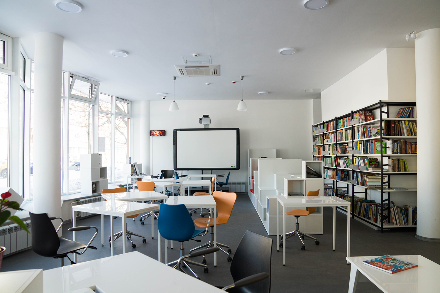 Эта библиотека — отличное место для любителей современных минималистичных интерьеров и хороших книг. Это удобное пространство для работы и учёбы, где вас никто не будет отвлекать. Перед посещением просто забронируйте место в коворкинг-зоне, тогда тишина и покой вам будут обеспечены.