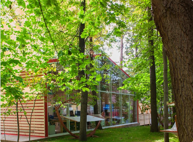 Коворкинг для тех, кто хочет почувствовать единение с природой. Пространство расположено в нескольких минутах ходьбы от станции метро Ленинский проспект, и тут вы можете наслаждаться лесными панорамами и тишиной.