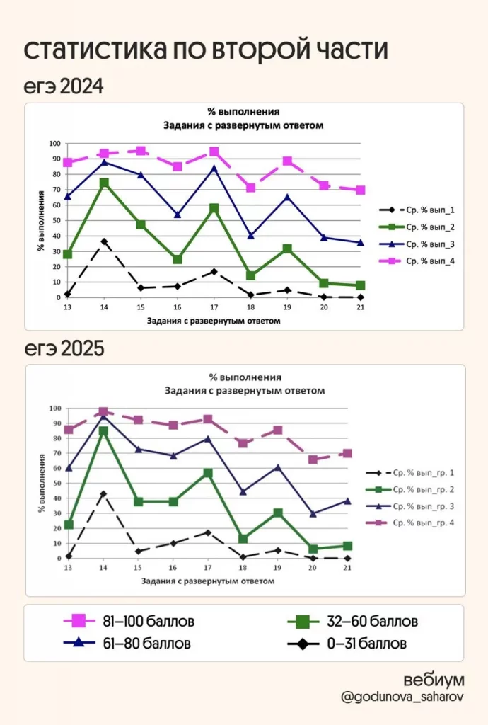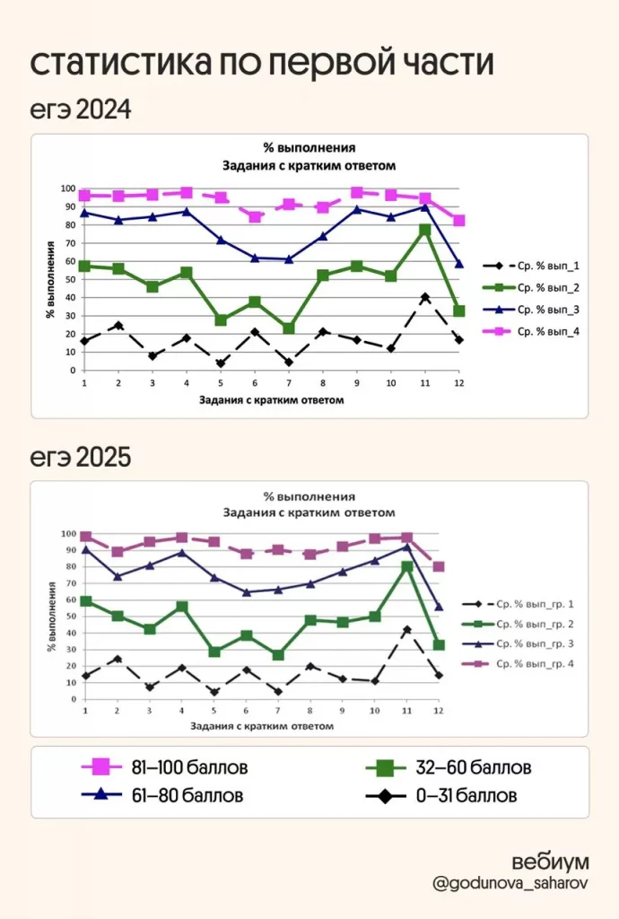 • В задании 19 в этом году немного упал процент выполнения (43% против 48% в 2024-м). Разработчики вспомнили про сложные термины.