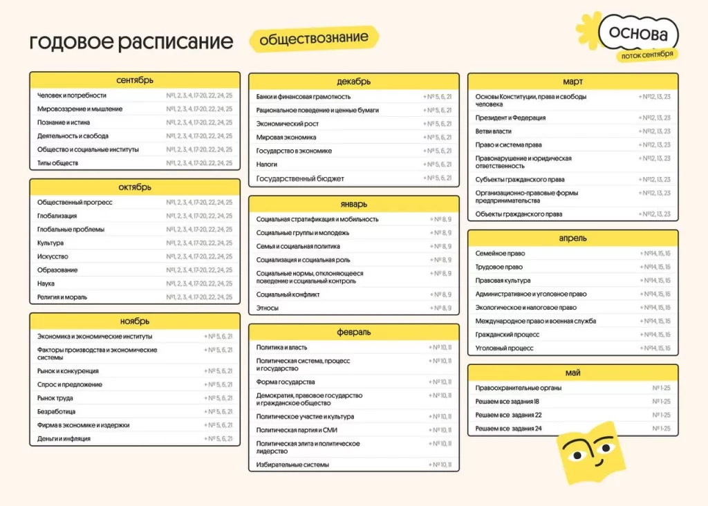 Годовое расписание курса подготовки к ЕГЭ 2026 по обществознанию