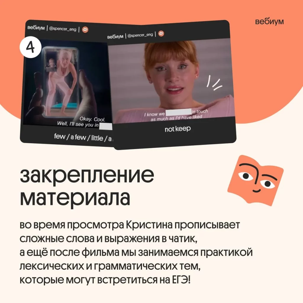 Чтобы извлечь максимальную пользу из фильмов, мы используем активное слушание — фиксируем незнакомые слова, а после просмотра закрепляем грамматические темы на практике заданий ЕГЭ 2026 по английскому языку.