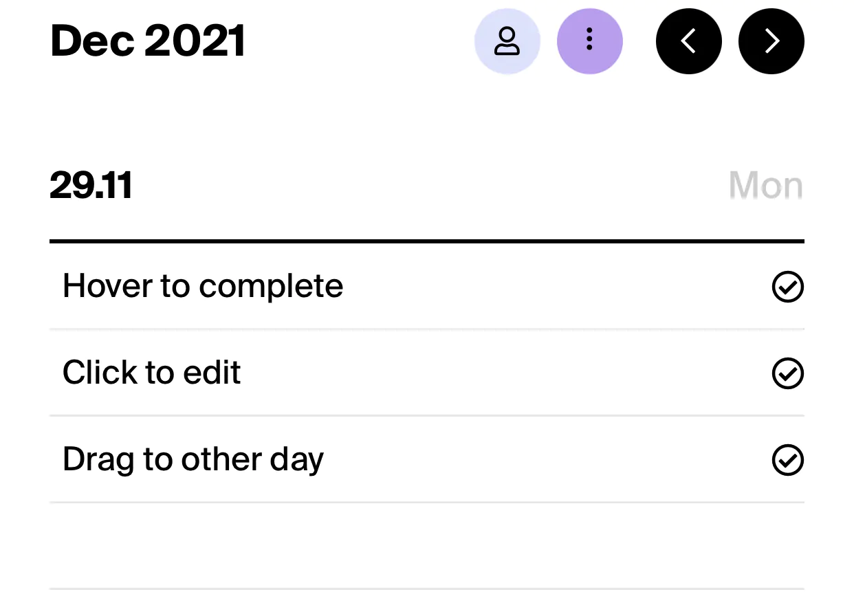 Ещё одна полезная функция TWEEK — автоматический перенос незавершённых дел на следующий день. Эта функция не позволит исчезнуть задачам, которые не выполнил или про которые забыл. Также сайтом можно пользоваться совместно с другим человеком — достаточно поделиться ссылкой с коллегами или друзьями.