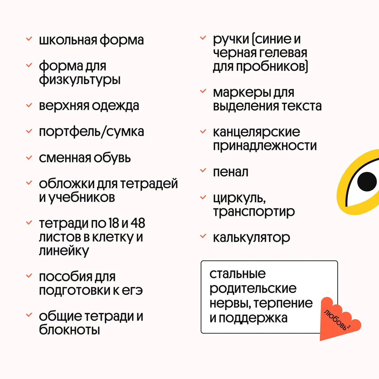 💡 Даже если ваш ребёнок уже проявляет самостоятельность и сам собирается к учебному сезону, посоветуйте ему свериться с нашим списком всех необходимых вещей, которые должны быть у каждого ученика.