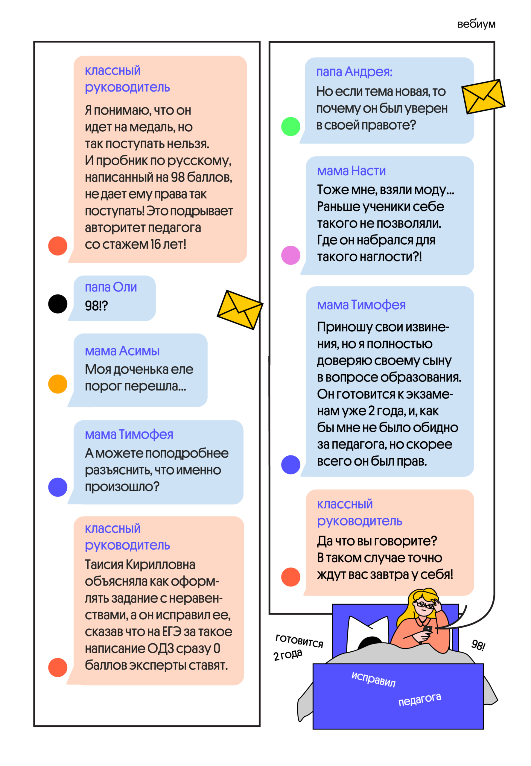 У нас есть решение! Записывайтесь на курсы в Вебиум. И давай вместе следить за драмами, переживаниями и даже поступлением наших героев! Посмотрим, что жизнь уготовила для журналиста, медика и технаря