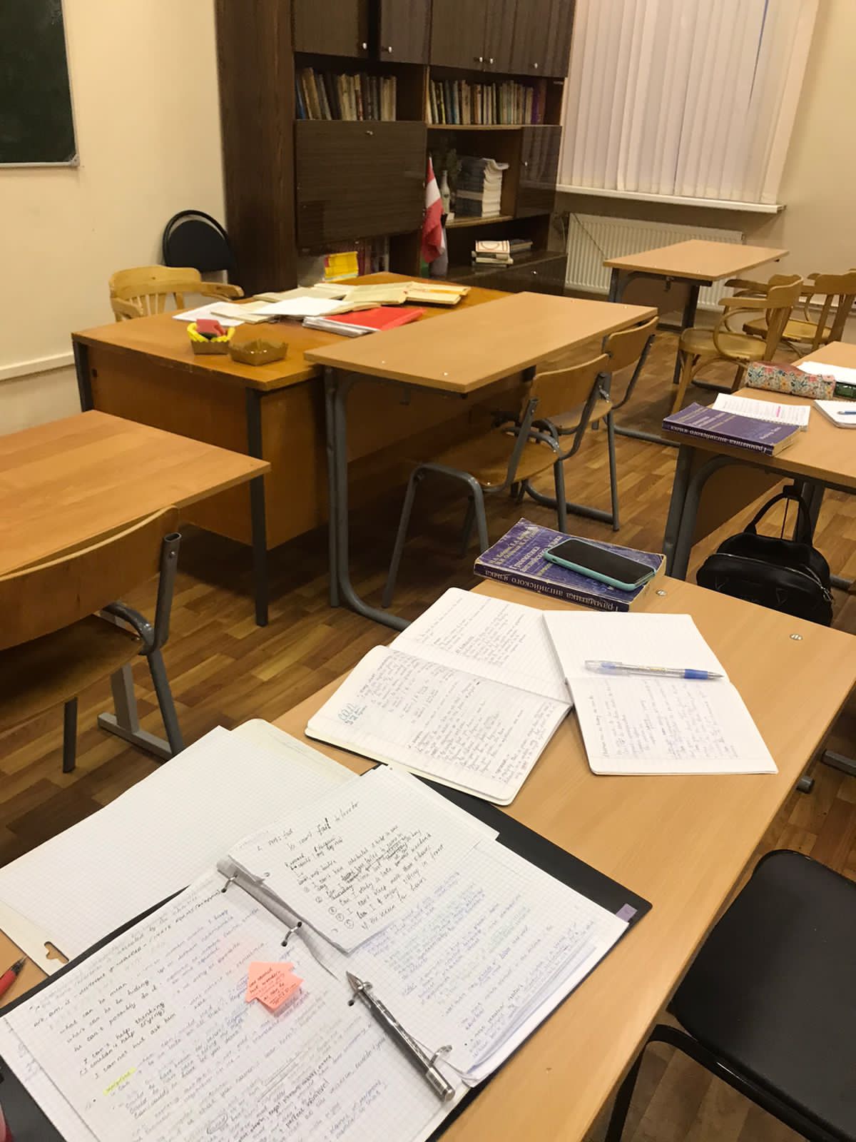 18:00 Начало занятий. Нас в группе всего три человека — все остальные либо в академическом отпуске, либо перевелись на немецкий язык (я изучаю французский). Так что у нас, можно сказать, индивидуальные занятия!