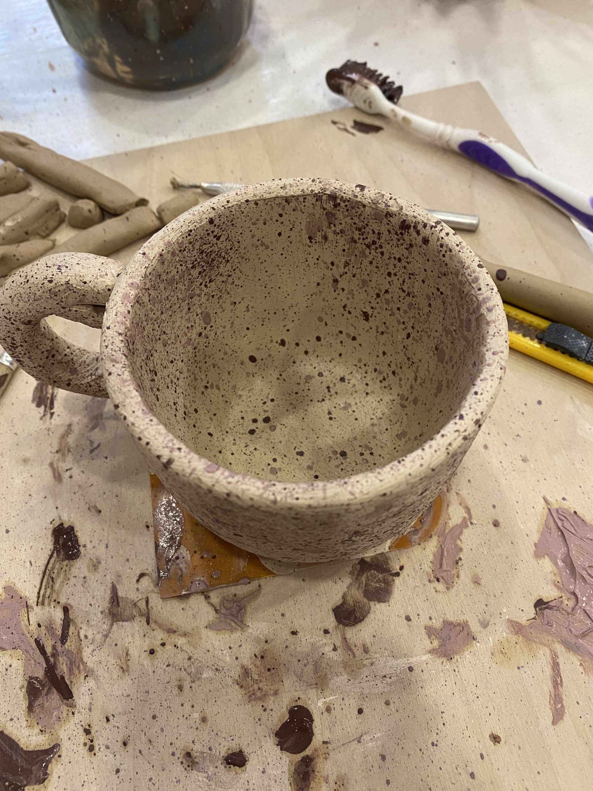 13:30 У меня получилось слепить симпатичную чашку. Она будет полностью готова через три недели, так как необходим обжиг. Я очень довольная и счастливая.