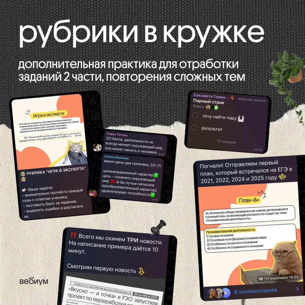 ✦ в кружке дополнительные онлайн-занятия с эксперткой, домашки, разборы сложных заданий