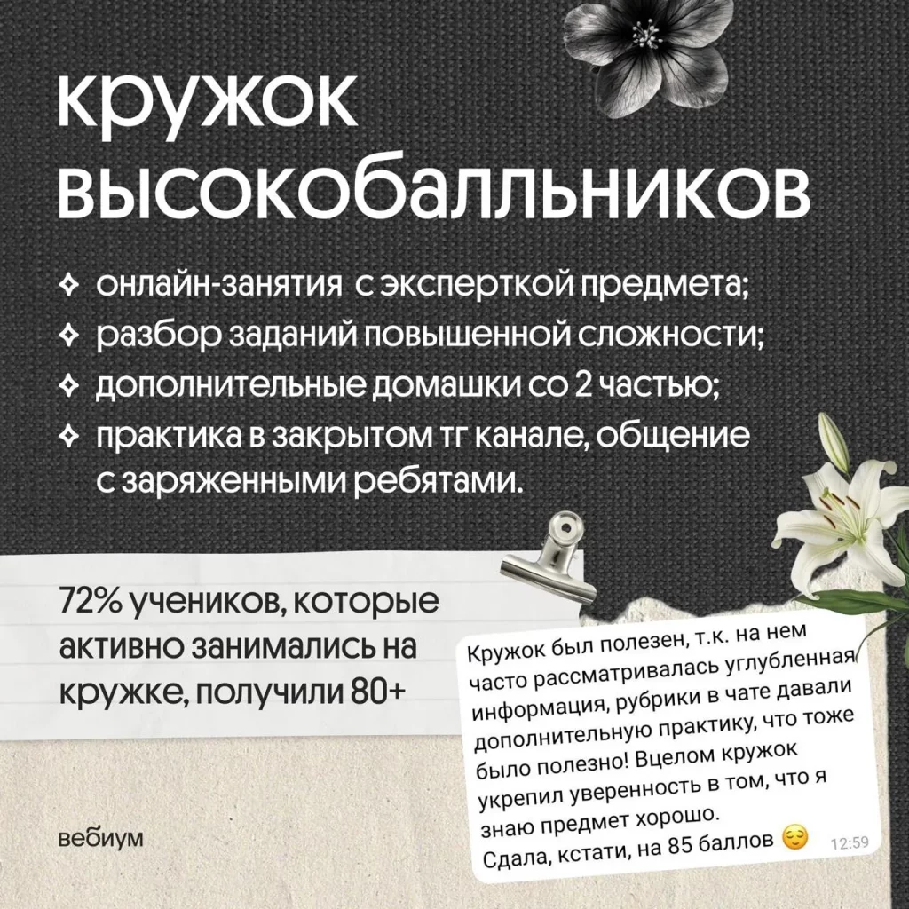 ✦ в кружке дополнительные онлайн-занятия с эксперткой, домашки, разборы сложных заданий