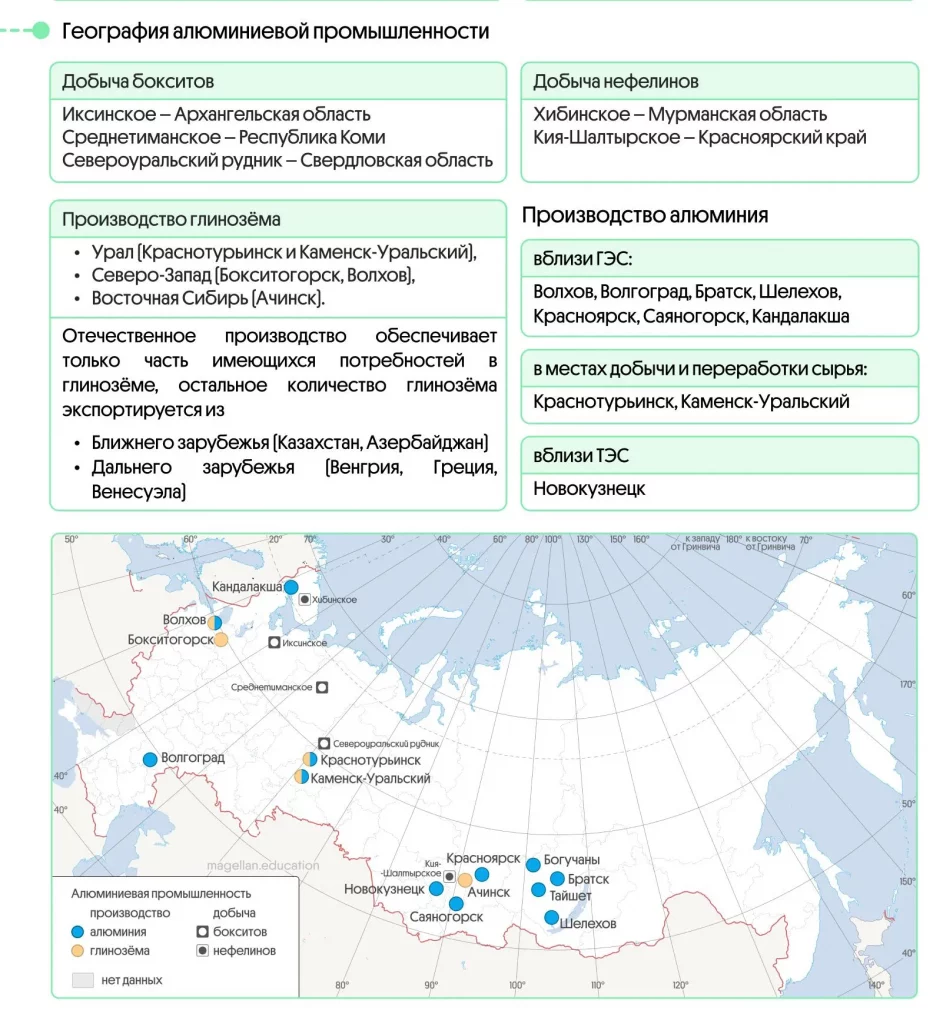 Мы должны отличать центры производства глинозёма от производства металлического алюминия; доменное производство от комбинатов полного цикла и электрометаллургических комбинатов