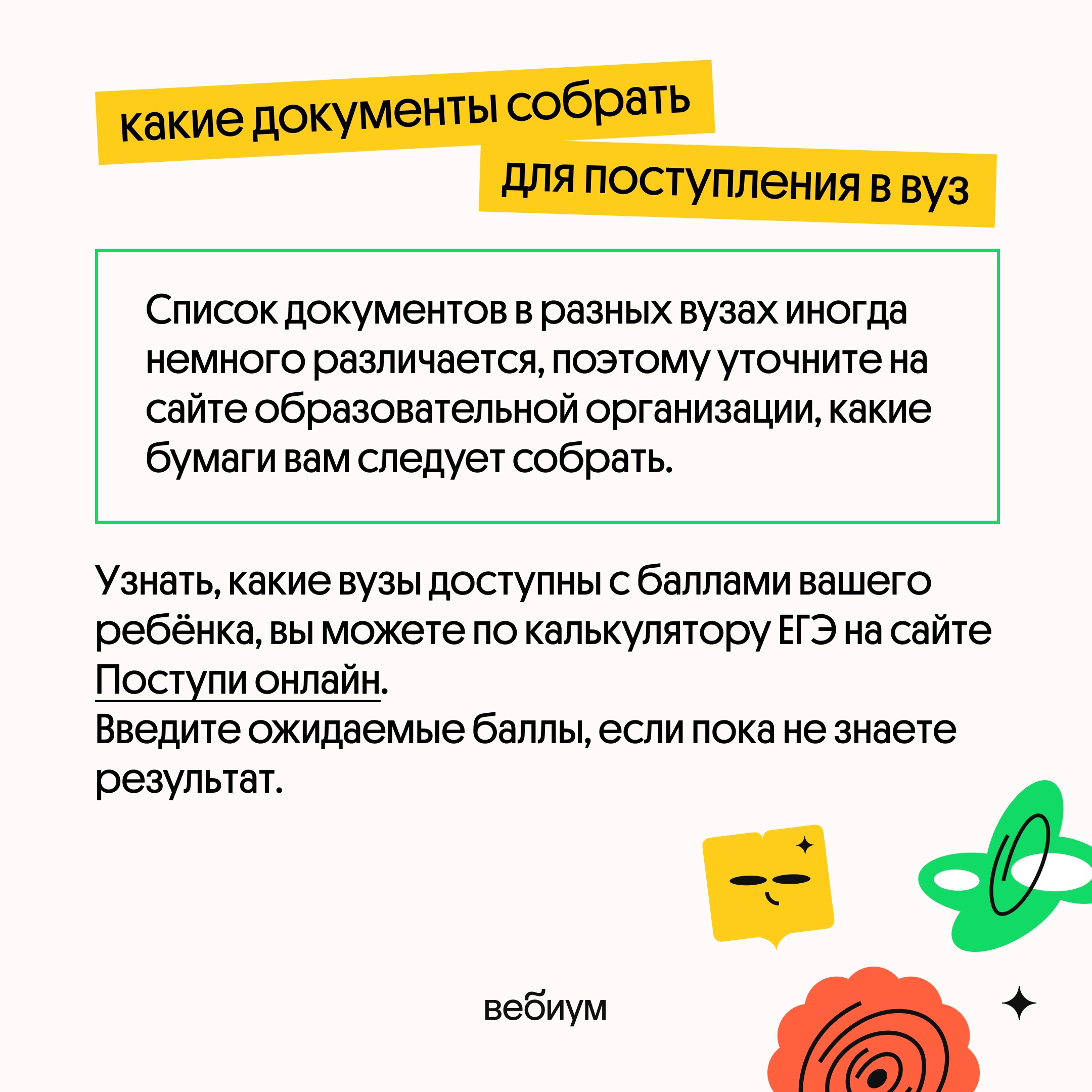Согласие на обработку персональных данных. Его тоже найдёте на сайте вуза. Если вам уже есть 18, подписываете сами, если нет — родитель или опекун.