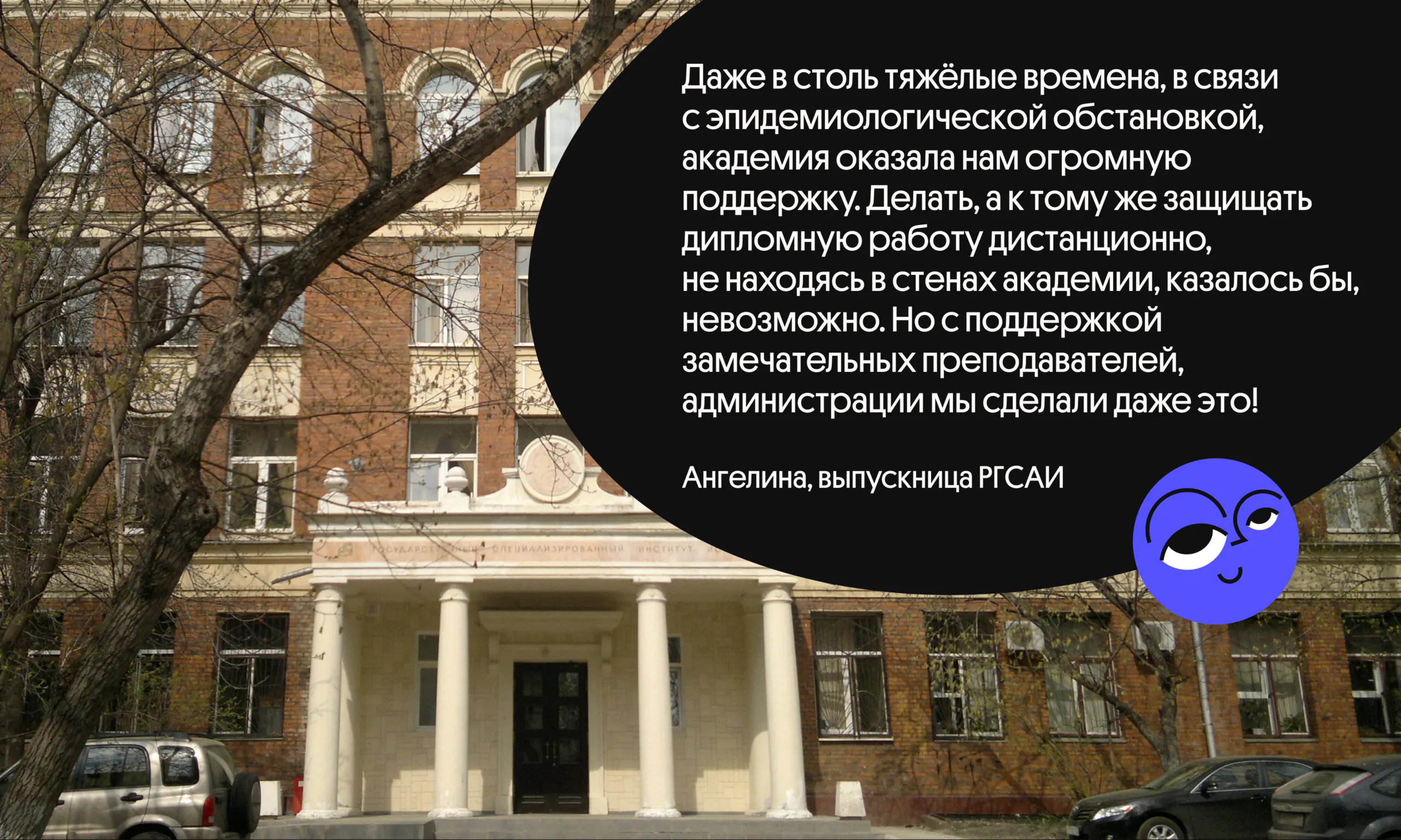 РГСАИ — это уникальная академия. Помимо богатой истории ещё в статусе института, у неё действительно впечатляющая миссия, как и её реализация, позволившая попасть такому необычному месту в список Forbes и стать одним из лучших творческих вузов России.