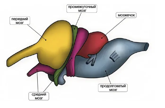 В переднем мозге сформировались зачатки коры, состоящей из серого вещества. Это привело к усложнению поведения, координации движений и появлению условных рефлексов.
