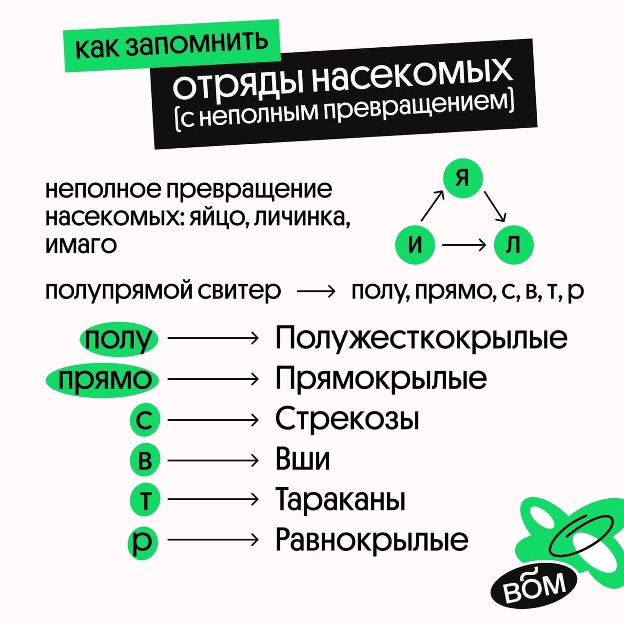 - как запомнить отряды насекомых (с полным и неполным превращением);
