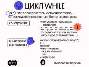 Первый цикл, который мы рассмотрим, это цикл while (с англ. «пока») Он имеет следующую конструкцию: