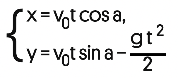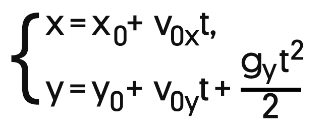 Получается, что вдоль оси Ox тело движется равномерно, а вдоль оси Oy равноускоренно, составим систему уравнений для координат тела: