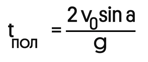 Мы подготовили фундамент! Теперь давайте начнём поиски со времени полёта. Для этого положим координату y=0, так как в момент падения высота тела равна нулю. Преобразовав, получим время полёта!