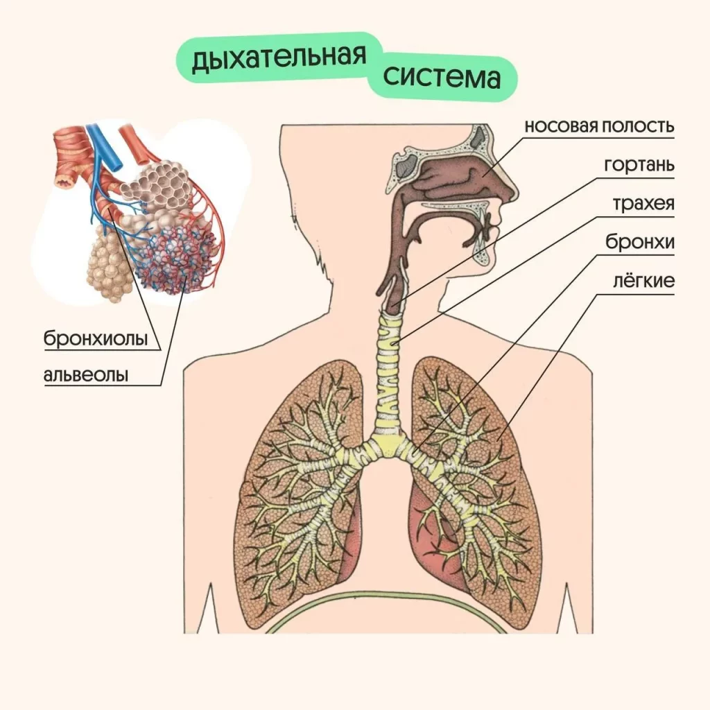 Собрали самое главное по дыхательной системе: общая схема дыхательной системы, дыхательные пути, регуляция дыхания, заболевания дыхательной системы, все про лёгкие и газообмен, дыхательный цикл.