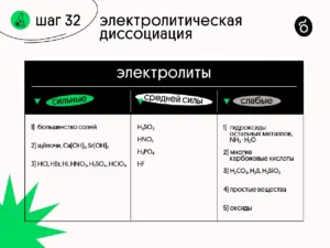 ⚡️ Электролитами являются большинство веществ ионного строения, а также многие вещества молекулярного строения (с ковалентной полярной связью). По способности диссоциировать на ионы электролиты делят на сильные, средние и слабые (см. таблицу).
