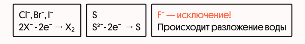 Бескислородный анион: на аноде — галоген, простое вещество.