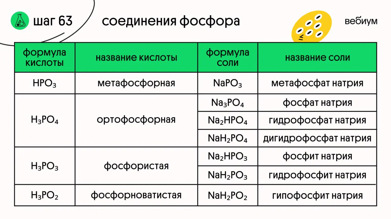 Соединений у фосфора не так уж и мало, но на наше счастье свойства учить придется только у некоторых из них 🙃