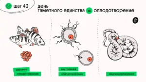 Внешнее оплодотворение происходит в окружающей среде. Все точно слышали про икру рыб, кто-то даже кушал её. Так вот сначала женская особь откладывает икру, после чего «мужчины» приплывают и оплодотворяют икринки. Важным условием этого мероприятия является вода, или хотя бы влажная среда: яйцеклетки защищены от высыхания, а сперматозоиды способны передвигаться.