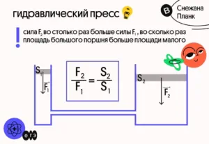 Тогда давление под малым поршнем — p1=F1/S1, а под большим — p2=F2/S2 .