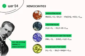 ℹ️ Хемосинтез нужен для образования органических веществ из неорганических. Вспомните «фотосинтез для чайников»: при фотосинтезе использовалась световая энергия, а вот в хемосинтезе для получения энергии используется энергия окисления неорганических веществ.