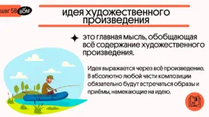Река, движущаяся в одном направлении – идея произведения; а рыбки, трава, блики, камни – все это формальные компоненты произведения.