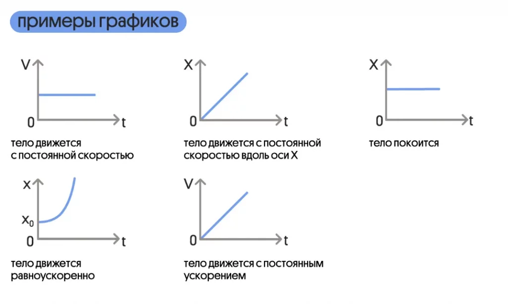 По графику (зависимости одной физической величины от другой) определите тип движения (равномерное движение, равноускоренное движение, состояние покоя).