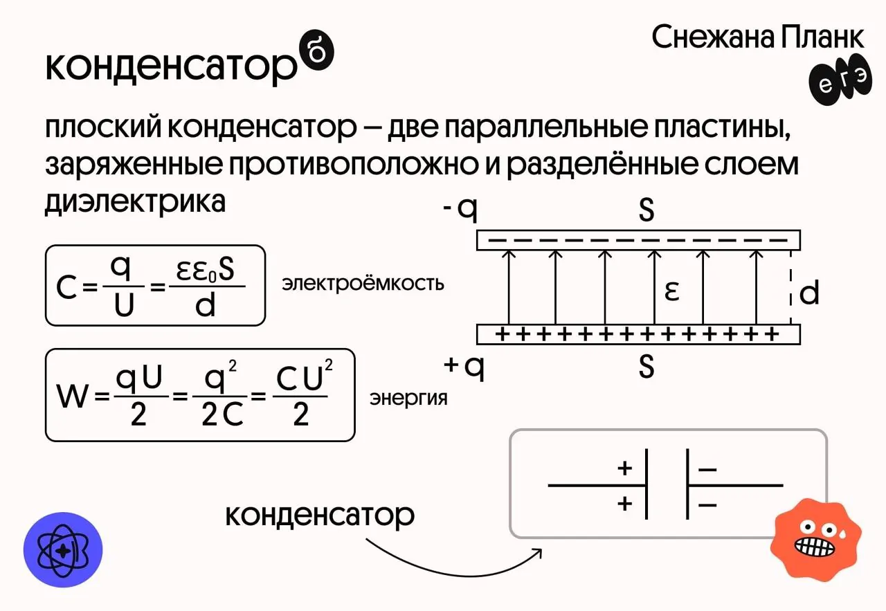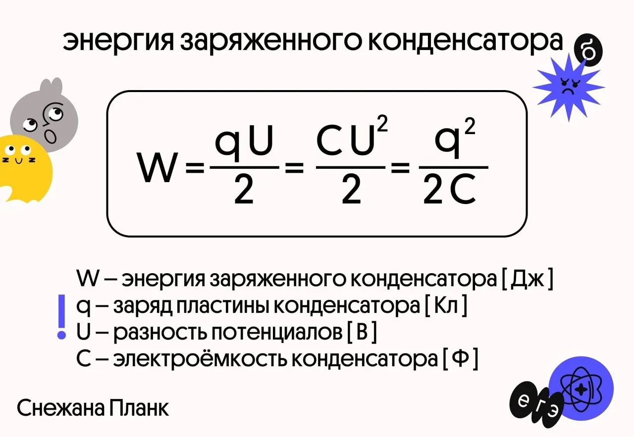 Энергия конденсатора обусловлена тем, что электрическое поле между его обкладками обладает энергией.