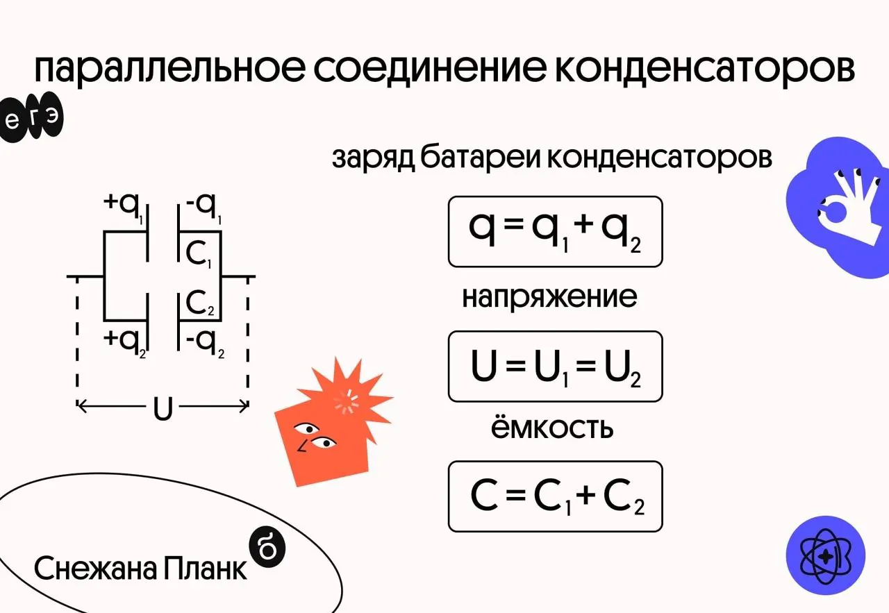 ✍️ Если группа конденсаторов включена в цепь так, что к точкам включения непосредственно присоединены пластины всех конденсаторов, то такое соединение называется параллельным.