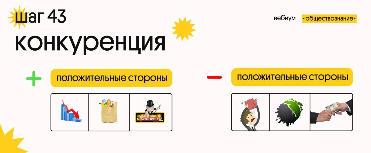 🔎 Конкуренция — соперничество между субъектами рыночной экономики за максимально эффективное использование факторов производства при единых правилах для всех участников.