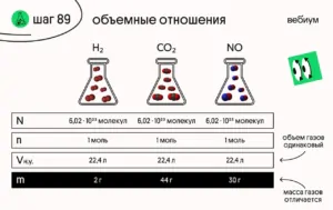 Этот закон напрямую связан с полезным соотношением. Дело в том, что объёмы газов (опять же, при одинаковых условиях) соотносятся друг с другом так же, как и количества. Разберём на примере 👇