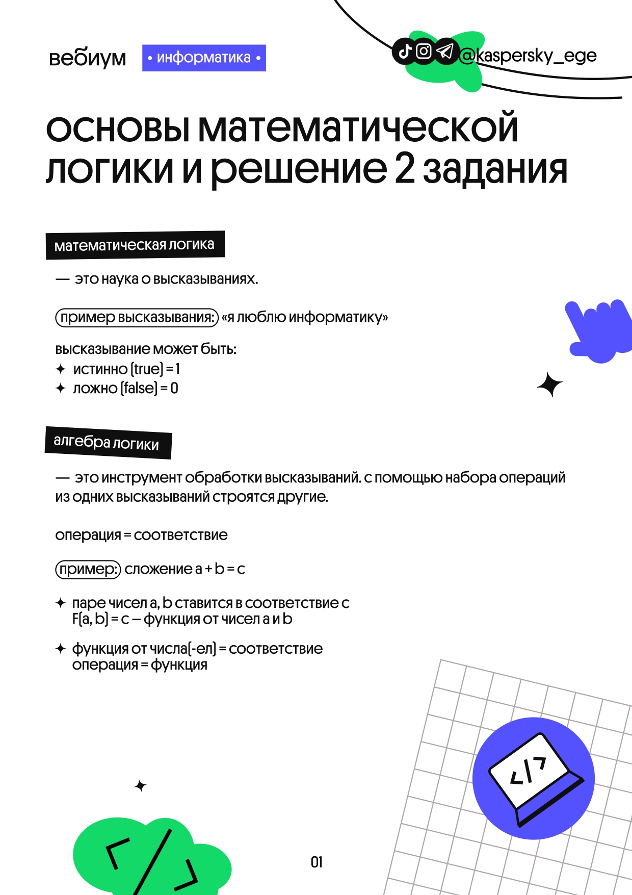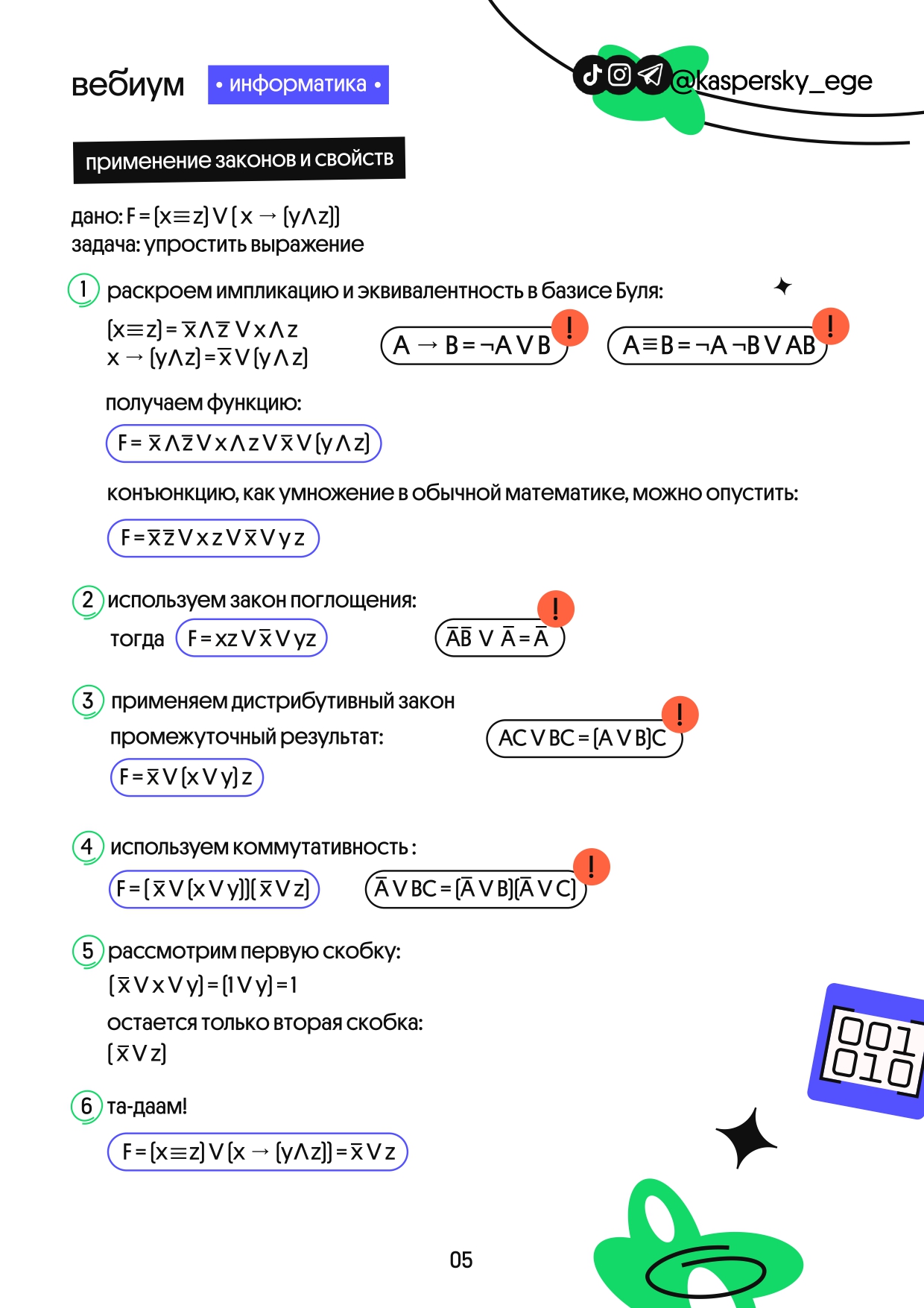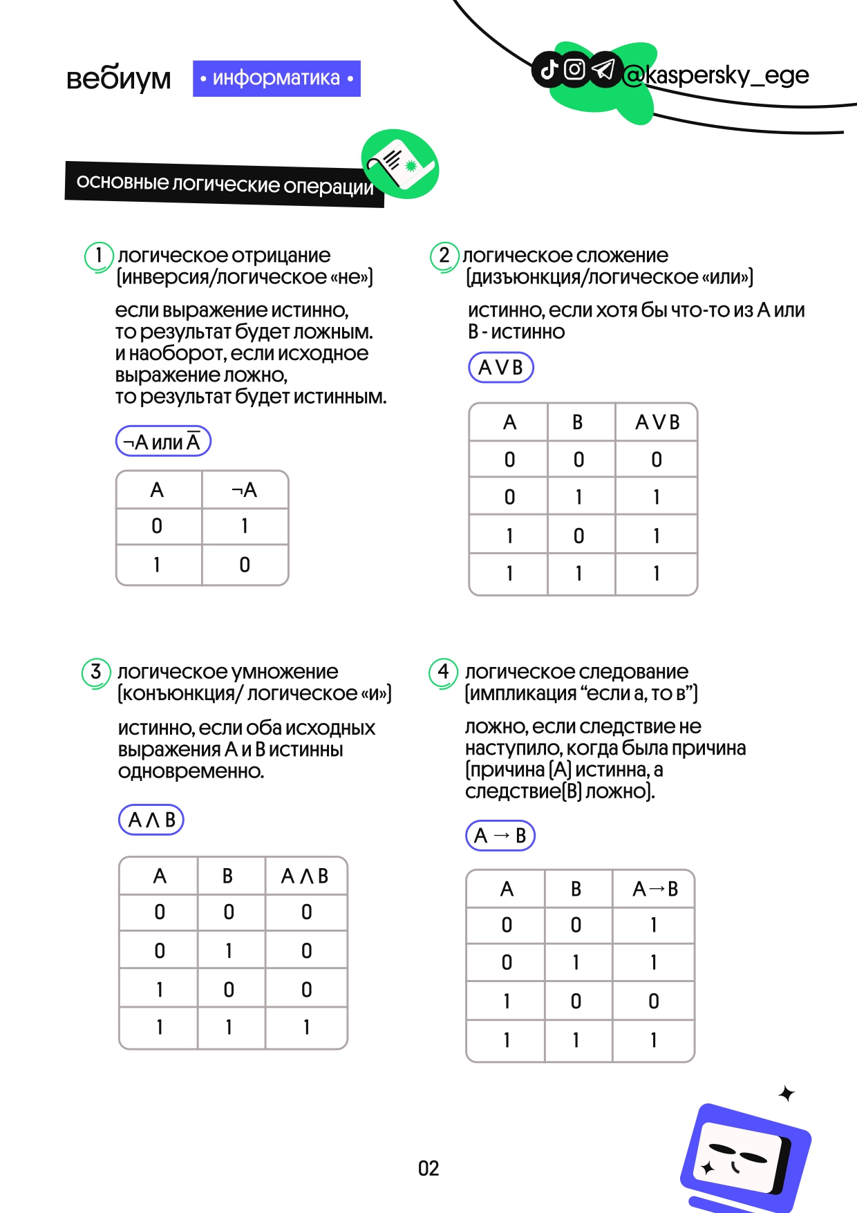 Ловите шпаргалку по основам математической логики с примерами. Для ЕГЭ по информатике точно пригодится.