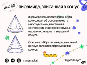 🔺 Во-первых, вершина пирамиды и конуса должны быть в одной и той же точке, а высоты проведенные из этой вершины должны падать в центр окружности. То есть ось конуса и высота пирамиды должны совпадать.