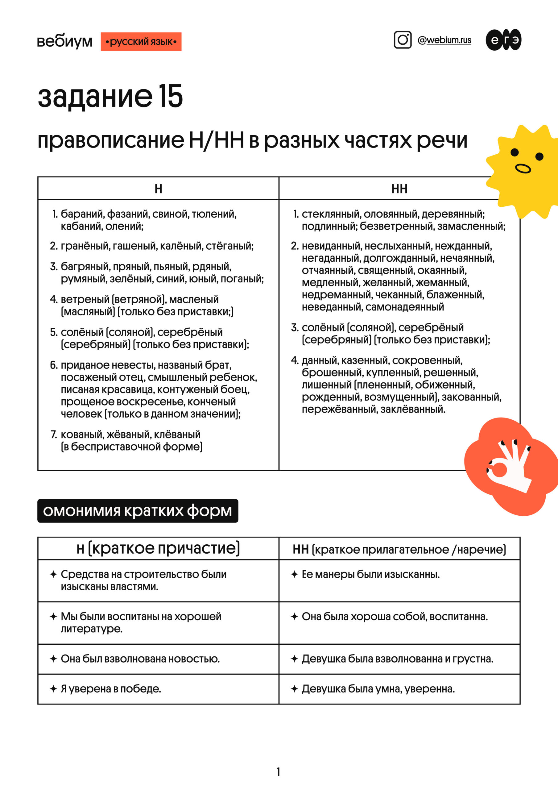 Всё ещё путаетесь в написании —НН— и -Н- в 15 задании? Держите классную теорию, чтобы не потерять баллы на ЕГЭ по русскому языку. В конце — ссылка, чтобы скачать эту шпаргалку.