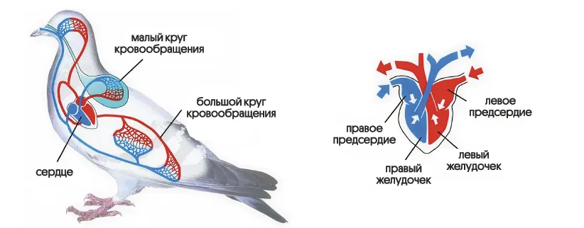 → двойное дыхание, интенсивный обмен веществ, теплокровность, быстрое пищеварение.