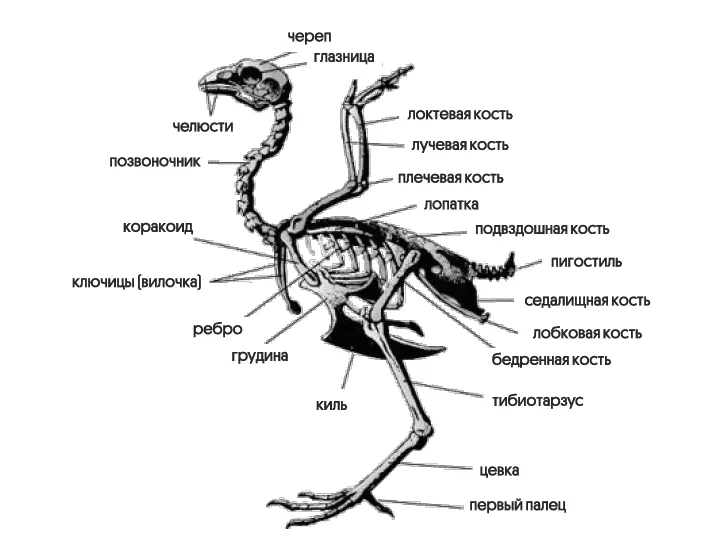 Вилочка (сросшиеся ключицы) — амортизирует удары при взмахах крыльев.