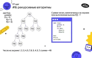 ▫️ После этого управление вернётся к процедуре F(4), так как до этого программа зациклилась. Итак, F(4) выполнит следующий шаг своего алгоритма, то есть она обратится к F(n + 3) = F(7) и выведет на экран число 7