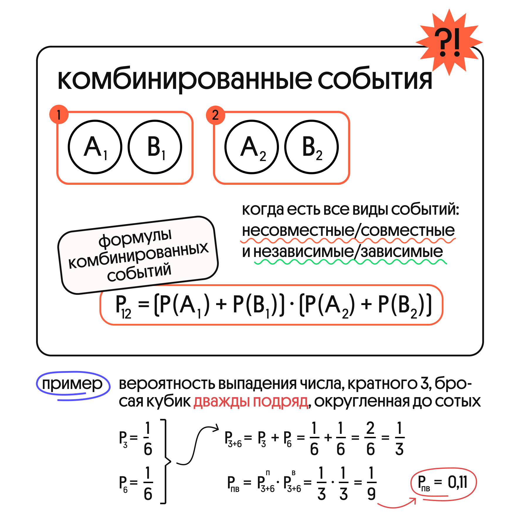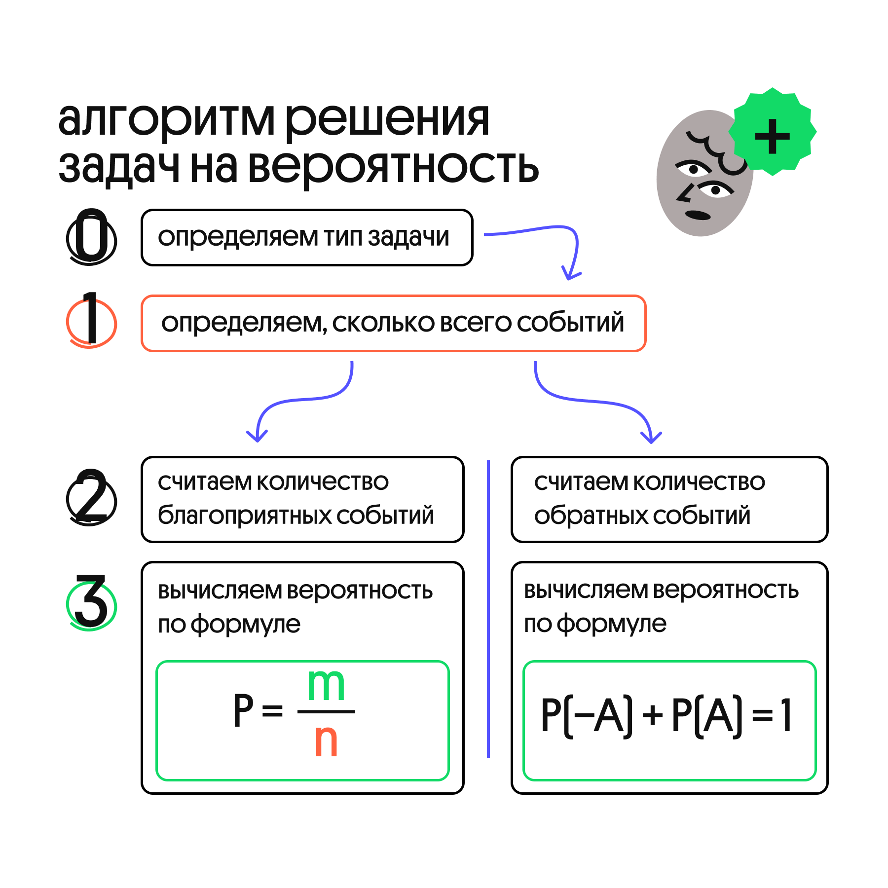 В ЕГЭ по математике целых два задания на теорию вероятностей, поэтому стоит уделить ей в два раза больше внимания! Первое решается по основной формуле вероятности, а вот над вторым придётся подумать и вспомнить, какие бывают события.