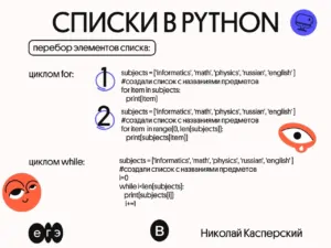 subjects = [‘Informatics’, ‘Math’, ‘Physics’, ‘Russian’, ‘English’ ] #создали список с названиями предметов