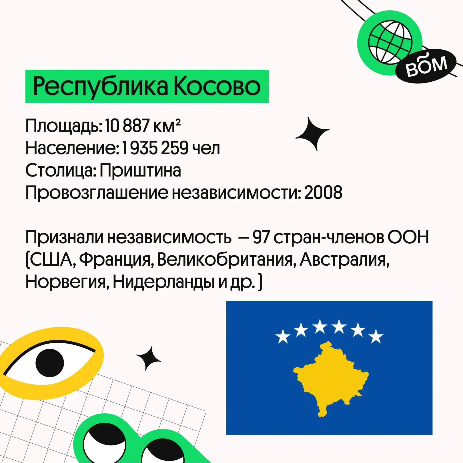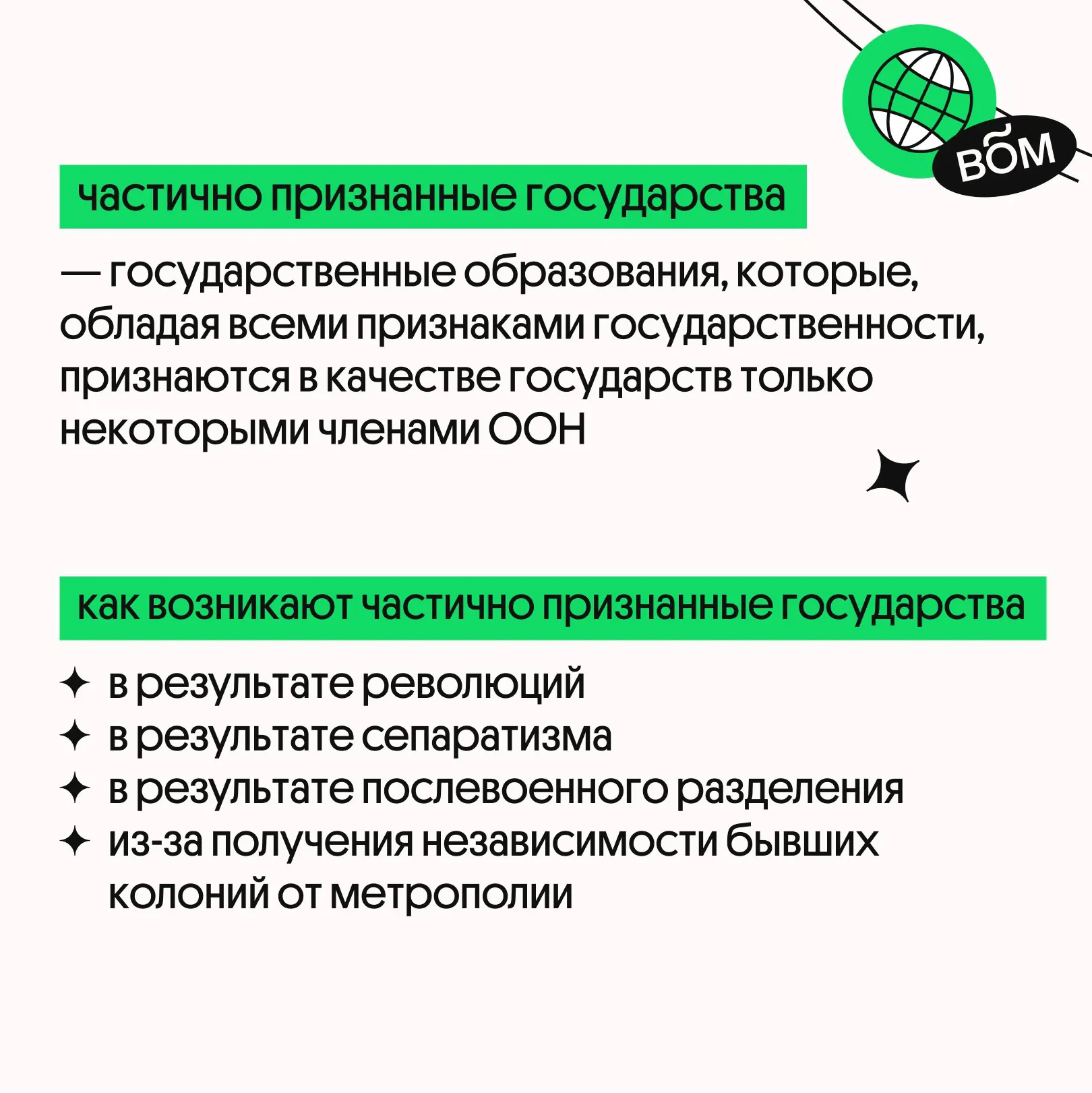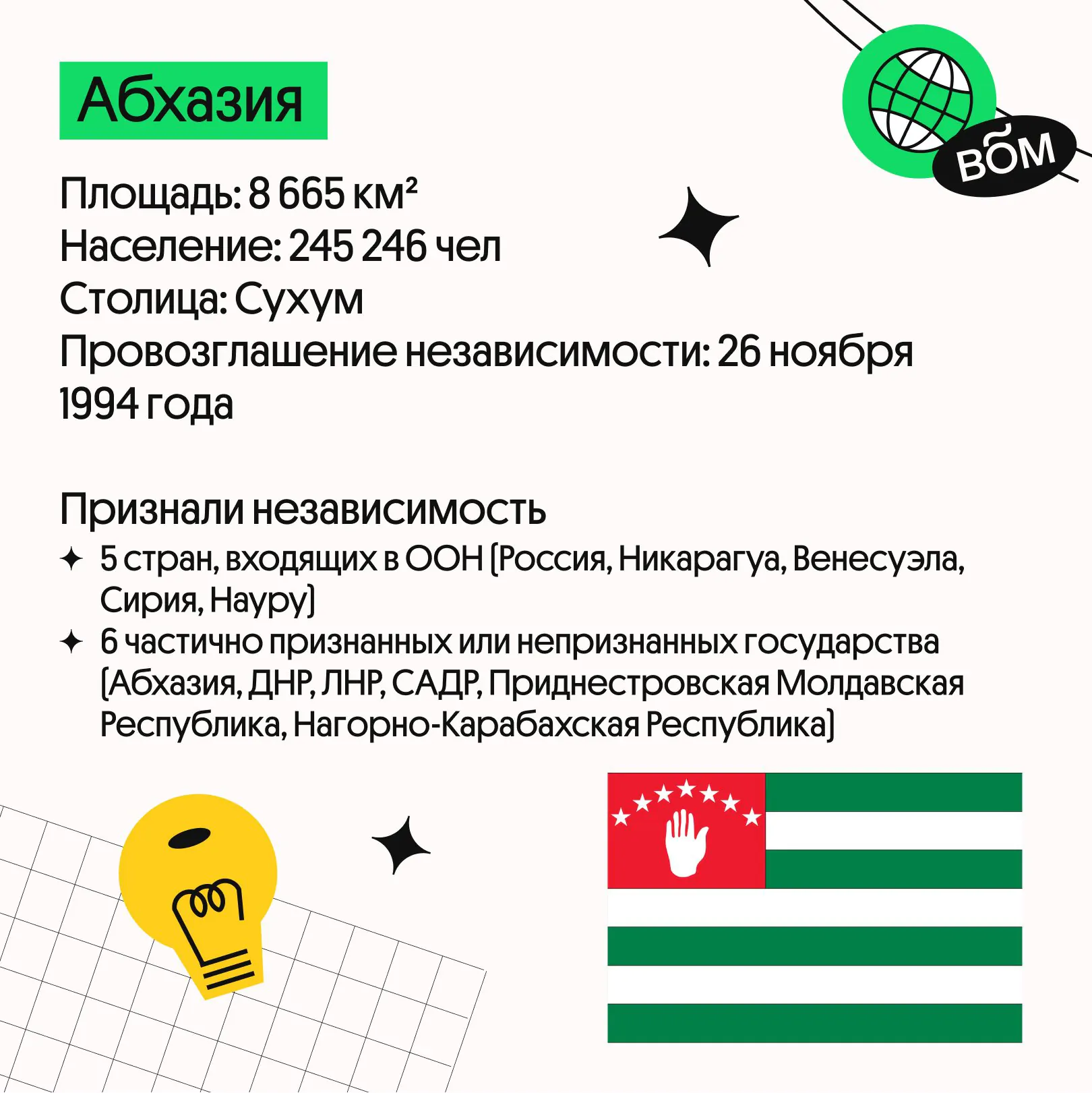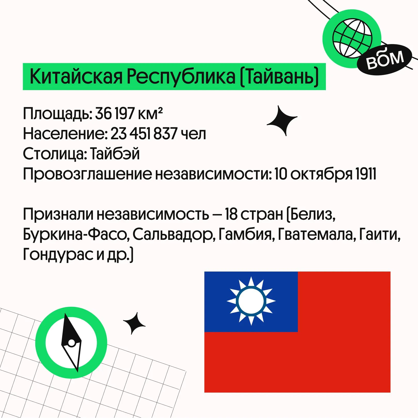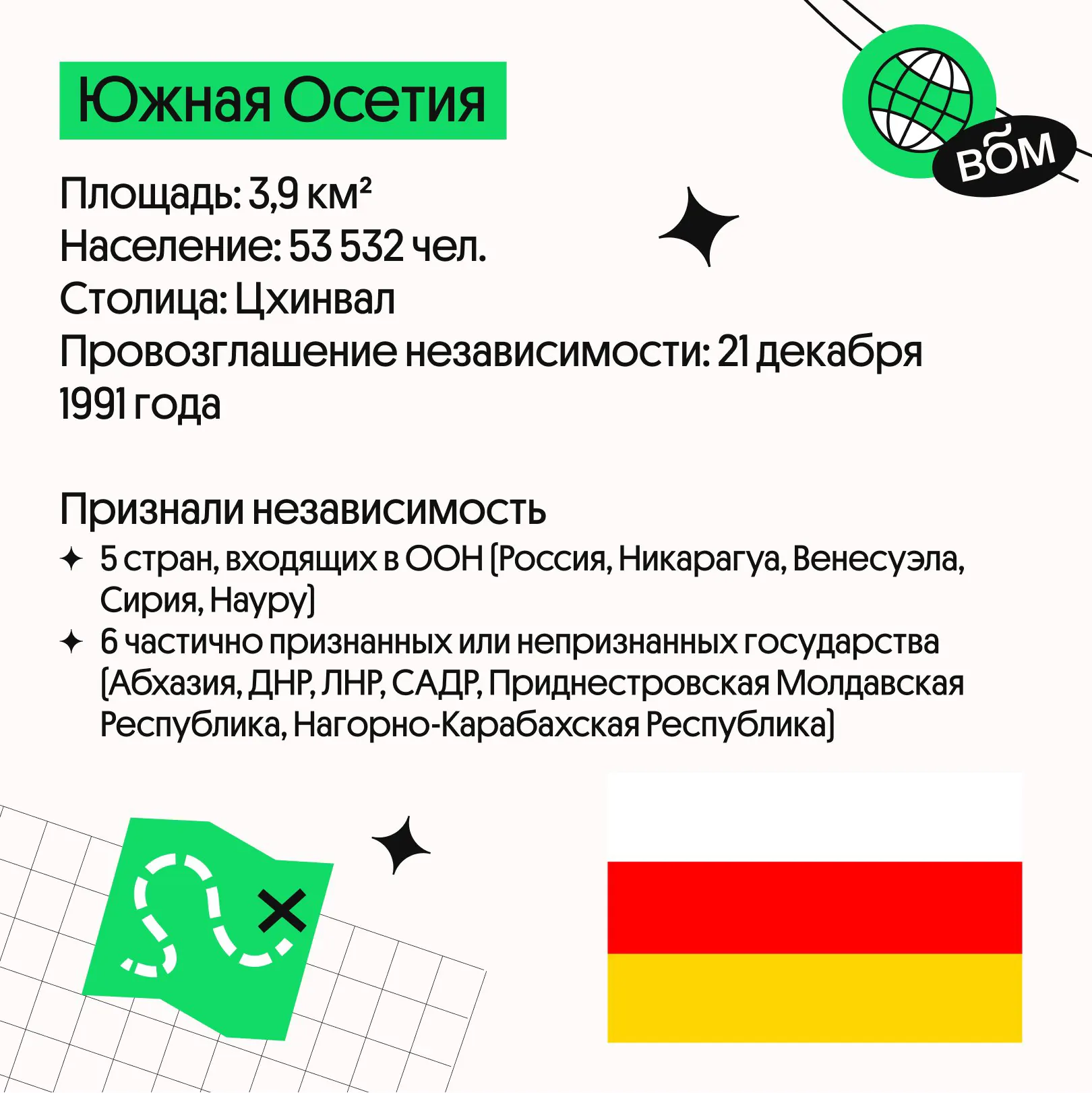 Давно искал компактную шпаргалку по частично признанным государствам? Тут мы подготовили для вас полезную информацию про Республику Косово, Тайвань, Южная Осетию и Абхазию. Отлично подойдёт для тех, кто решил набрать 100 баллов в ЕГЭ по географии.