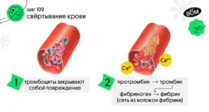 Первыми на повреждение в сосуде бросаются тромбоциты — они пытаются своими тельцами-пластинками закрыть повреждение. Если брешь небольшая, этого достаточно.