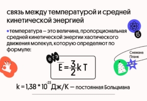 Связь между температурой и кинетической энергией устанавливает формула на картинке 👇