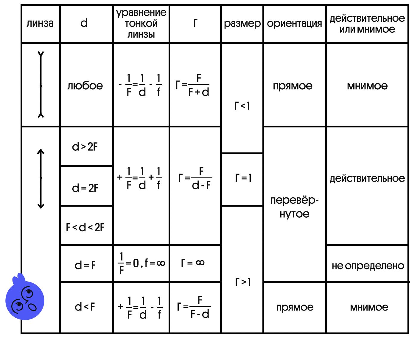 В случае одиночной линзы прямое изображение предмета всегда является мнимым, а перевёрнутое — действительным. Изображение предмета, полученное на экране (Э), всегда является действительным, т.е. использована линза собирающая.