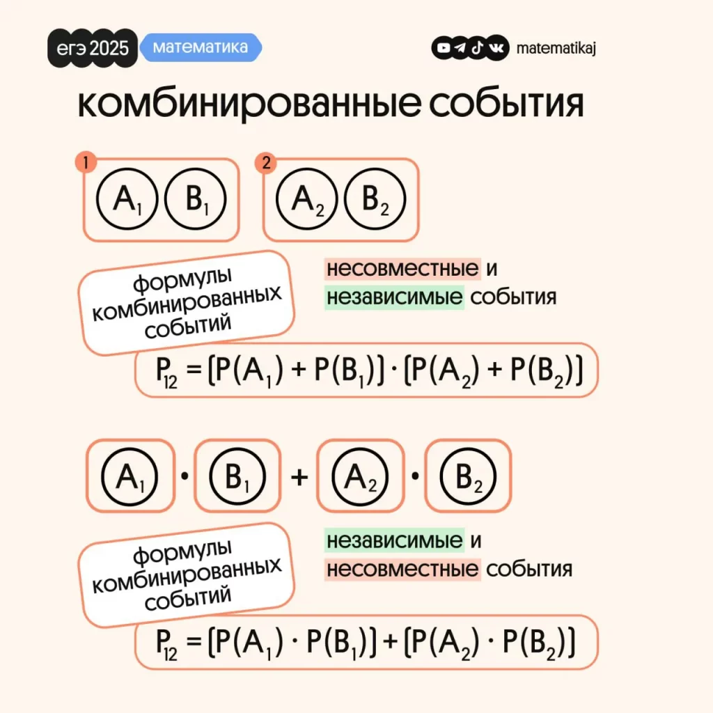 Но чтобы уметь решать все эти типы, необходимо различать зависимые/независимые; совместные/несовместные события.