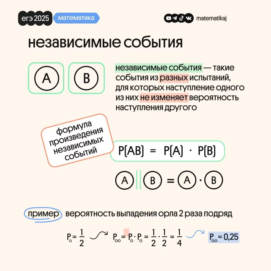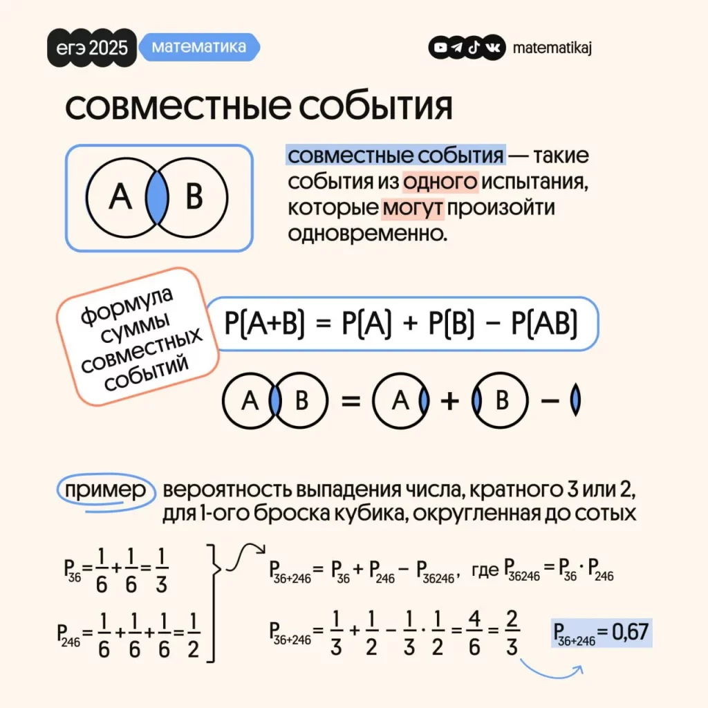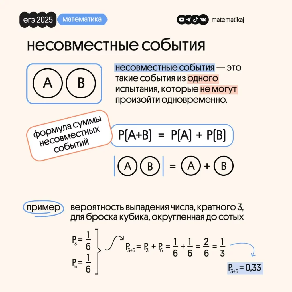 Но чтобы уметь решать все эти типы, необходимо различать зависимые/независимые; совместные/несовместные события.